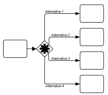 복잡한 게이트웨이는 복잡한 동기화 동작을 모델링하는 데 사용할 수 있습니다. Expression activationCondition은 정확한 동작을 설명하는 데 사용됩니다. 예를 들어,이 표현식은 게이트웨이를 활성화하기 위해 5 개의 수신 시퀀스 흐름 중 3 개의 토큰이 필요하도록 지정할 수 있습니다. 게이트웨이에서 생성되는 토큰은 포함 게이트웨이의 분할 동작에서와 같이 나가는 시퀀스 흐름의 조건에 따라 결정됩니다. 토큰이 나머지 두 시퀀스 흐름에 나중에 도착하면 해당 토큰으로 인해 게이트웨이가 재설정되고 나가는 시퀀스 흐름에서 새 토큰이 생성 될 수 있습니다. 재설정하기 전에 추가 토큰을 기다려야하는지 여부를 판별하기 위해 게이트웨이는 포함 게이트웨이의 동기화 의미를 사용합니다.
